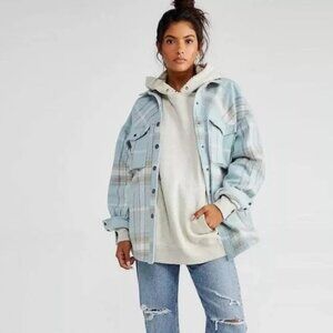 Free People Cabin Cozy Button Down Shirt Jacket in Seafoam to Plus Size