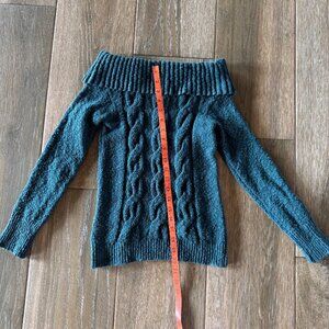 Free People Cable Foldover off the Shoulder sweater in teal size small