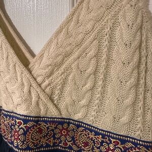 Free People Cable Knit V Neck Fit and Flare Dress