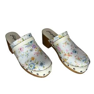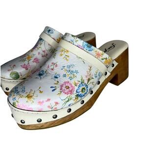 Free People Boho Floral Calabasas Round Toe Wooden Heel Clogs Shoes
