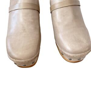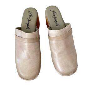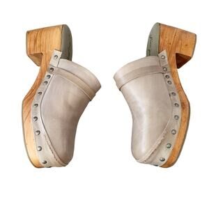 Free People Calabasas Leather Clogs 10 Taupe Grey Wood Heel NWOB