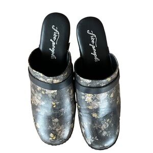 Step into style with the Free People Calabasas Floral Platform Clogs! These black leather beauties are not just your average footwear; they're a statement piece adorned with charming studs that add a touch of flair to any outfit. With a comfy slip-on design and a round toe, they're perfect for those busy days when you want to look fabulous without the fuss. The wooden heel, standing at approximately 3", gives you that little lift while keeping things effortlessly chic. There's just a tiny scuff on the back of the heel, but that just adds to their character! In size 37, these clogs are ready to take you on your next adventure in style. Get ready to strut your stuff!