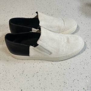 Free People Calf Hair Slip On Sneakers Leather Black White Size 9