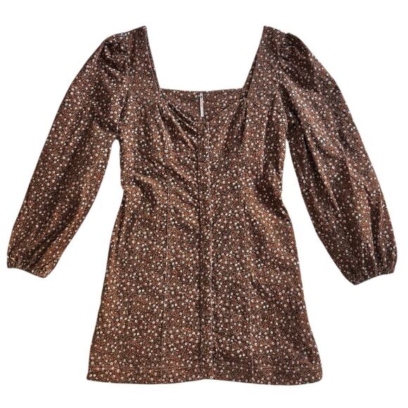Free People Call Me Cord Mini Dress Floral Puff Sleeve Corduroy Autumn Academia OB1210663