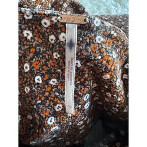 Free People Call Me Cord Mini Dress Floral Puff Sleeve Corduroy Bohemian Boho