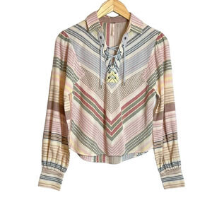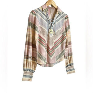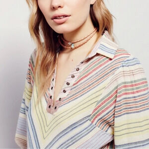Free People | Call My Name Top Stripe V Neck Grommets Long Sleeve