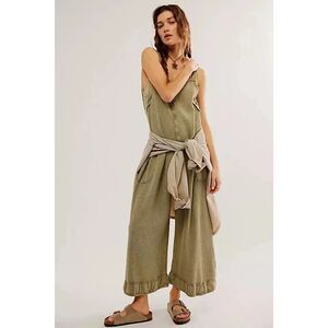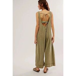 Free People Callie One-Piece Jumpsuit Wide-Leg Open Back Waffle FP ONE XL NEW