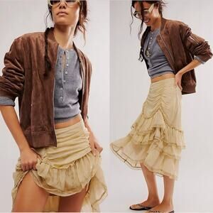 Free People Calliope Ruffle Midi Skirt Sage Medium NWT Ethereal Western Bohemian