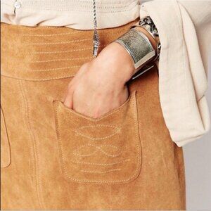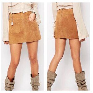 Free People Camel Brown Modern Love Genuine Suede Leather Mini Skirt 4 Small