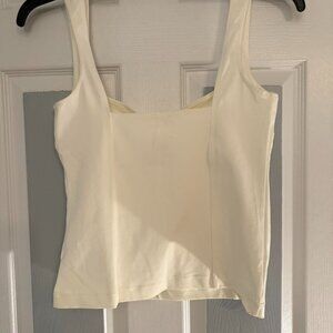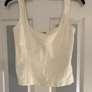 Free People Cami in white with crisscross detail at the bust . Perfect for casual outings. NWOT, never worn . Size medium .