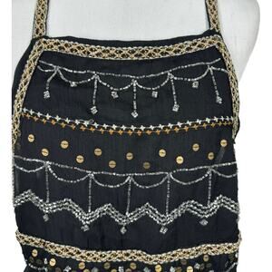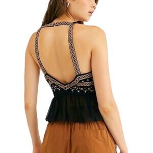 Free People Camille Embroidered Cami Top Medium Black Embellished Sequin Boho