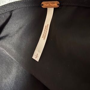 Free People "bubble" camisole, black, with light gray eyelash lace trim and adjustable straps. Size small.