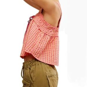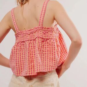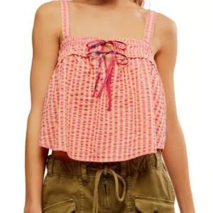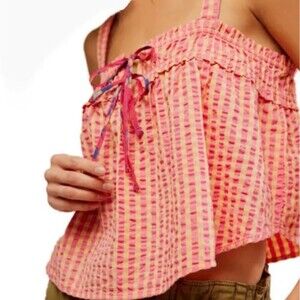Free People Camisole Tank Picnic Party Cotton Gingham Pink Butter Seersucker X