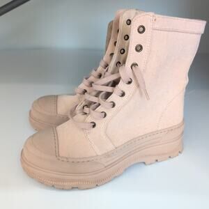Free People Camp Out Canvas Combat Boot Tan Lug Heel Chunky Streetwear 38 7.5-8