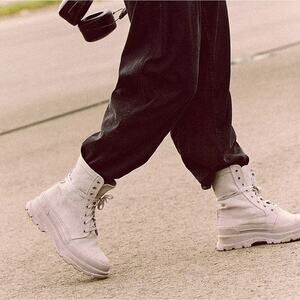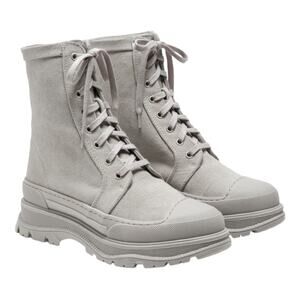 Free People Camp Out Canvas Combat Boots In Dove Grey Size 36 EU