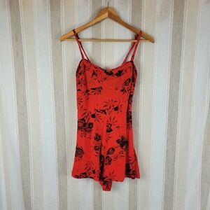Free People Candy Pin-Up Red Floral Print Romper Size 6