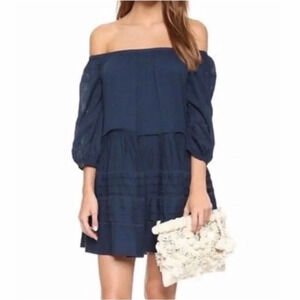 Free People Candy Shop Navy Blue Off The Shoulder Mini Dress XS Boho