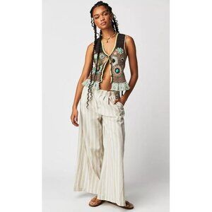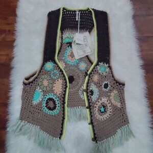 Free People Canyon Combo Desert Rose Crochet Fringe Boho Cropped Vest Medium NWT