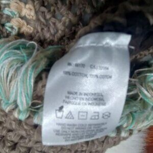 This hand-crocheted vest showcases a bohemian style with its unique pattern and fringe hem. Its earthy tones offer versatility when paired with casual outfits.