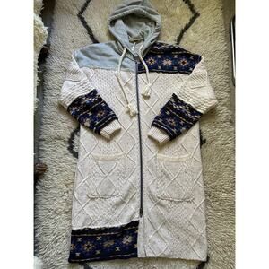 40” long cotton wool knit heavy coat sweater with zipper closure pockets hooded great condition oversized see all photos