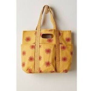 Free People Caravan Canvas Tote Sun Print Yellow Red Large Bag Boho Summer
