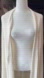 This is a long, cream-colored, open-front cardigan with a shawl collar, made of a soft, fine knit material.