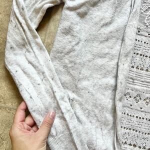 Free People Womens Cardigan Size S Cream Oatmeal Speckled Crochet Lace Boho Hippie Festival Cottagecore Beachy Minimalist