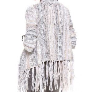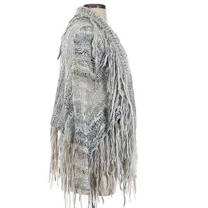 Free People Cardigan Sweater Sm Gray Birkenstock Fringe Alpaca Wool Boho Casual