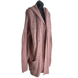 Free People Cardigan Sweater Womens XS Pink Alpaca Lemon Drop Oversized Hooded