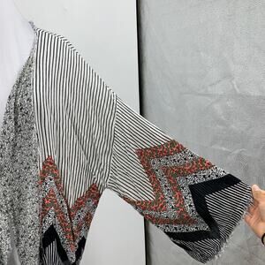 Free People Cardigan Womens M/L Fringe Knit Kimono Striped Wide Open Front
