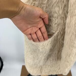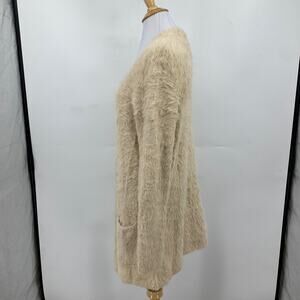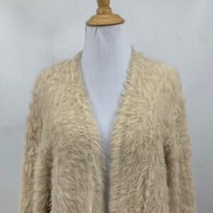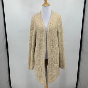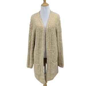 Free People Cardigan Womens Small Cream Fuzzy Faux Fur Open Front Tunic Sweater