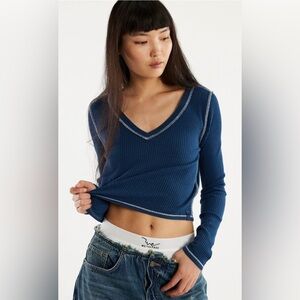 Free People Care FP Manchester Long Sleeve NWT deep sea navy blue XL V neck