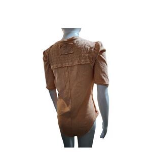 Free People textured fabric in sunset drive has a smocked neckline to add definition to this chic t-shirt.