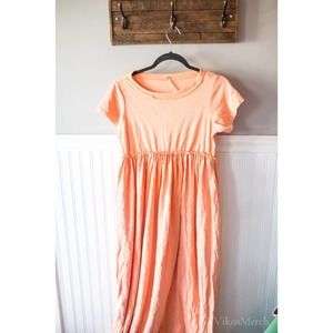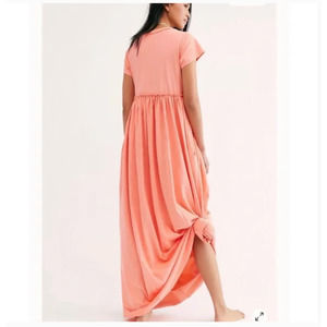 Your new go-to dress, this tee-shirt inspired maxi features a billowy, shapeless fit with a frilly waistband and pockets.