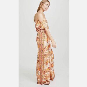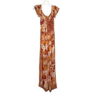 Free People Carmen Off the Shoulder Jumpsuit Orange Red Paisley XS