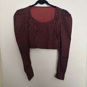 Free People Caroline Crop Top NWT New Pinstripe Puff Shoulder size S