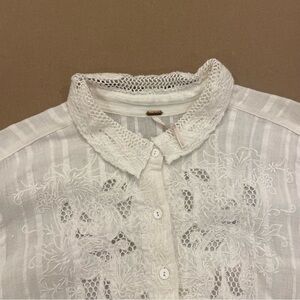 Free People Carter Dobby Embroidered/ Lace Button Down Top Size Large New W Tag