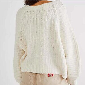 Free People Carter Ivory Pullover Sweater Balloon Sleeves Cuddly Oversized Sz LG