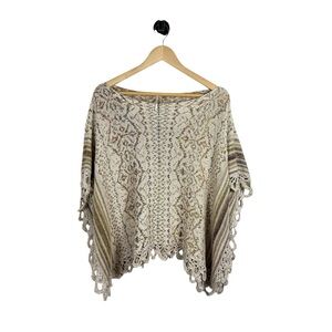 Free People Casablanca Fringe Knit Wool/Linen/Silk/Alpaca Poncho Ivory Multi S