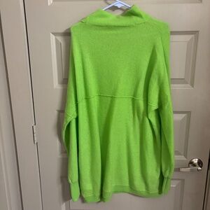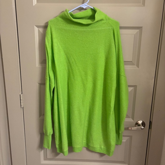 Selling this stunning New Without Tags Free People Lime Green Cashmere Tunic - Size Medium. Very oversized. Perfect for winter! Never worn. 100% cashmere. Mockneck/Turtleneck style.