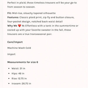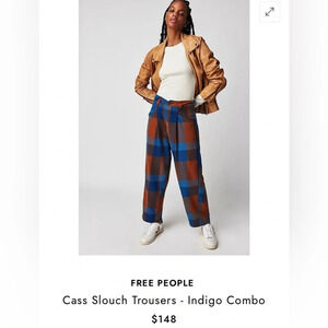 Free People Cass Plaid Baggy Loose Slouch Trousers NWOT