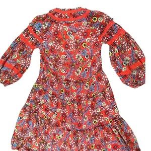 Free People Cassis Printed Chiffon Midi Dress Sz XS Floral Lattice Puff Sleeve