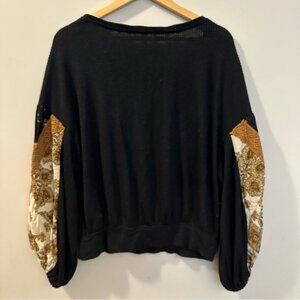 Free People Casual Clash Top Boho Black/ Multicolor Patchwork Blouse Sz Medium
