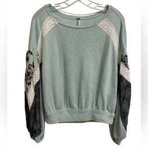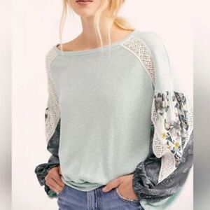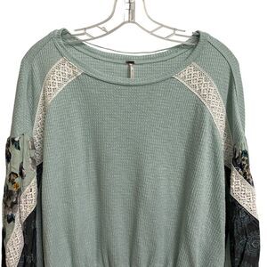Free People "Casual Clash" Top Sweater Women's Size XS Light Green Mixed Media
