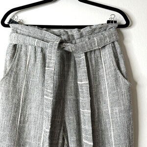 Free People Casual Cream & Black Tweed Stripe Crop Trouser Pants Tie Belt 2