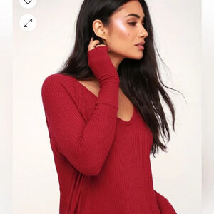 Get that "cool girl" style with the Free People Catalina Red Long Sleeve Thermal Top! This relaxed top, composed of soft thermal and ribbed knit fabric, makes the perfect foundation for creative layering with its wide neckline, long sleeves, and unique seaming throughout the slouchy-cool bodice. Ribbed hems and cuffs, plus an unfinished trim, tops off the laid-back look.