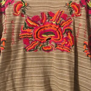 Free People Catalunya floral embroidered striped knit tshirt blouse. Short sleeve. Pullover round neck. Boxy. Women’s small. Preowned excellent condition.
