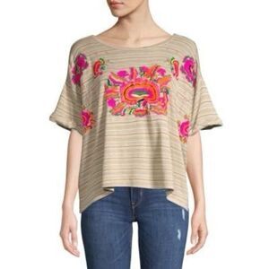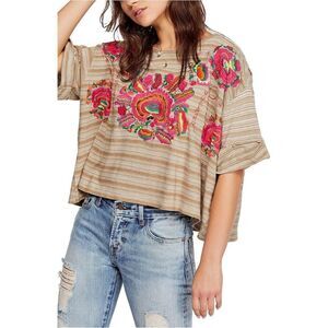 Tags: Free People Catalunya tee, Free People embroidered tee, Free People oversized tee, Free People mushroom combo top, Free People floral embroidered tee, Free People boxy tee, Free People striped tee, Free People short sleeve tee, Free People XS tee, Free People women’s tops, Free People casual tee, Free People boho tee, Free People knit tee, Free People cotton blend tee, Free People asymmetrical hem tee