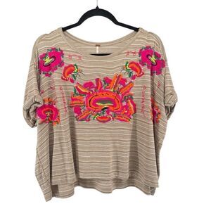 Free People Catalunya Mushroom Floral Embroidered Boxy Oversized Tee XS