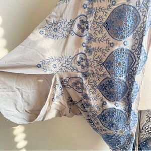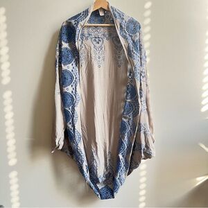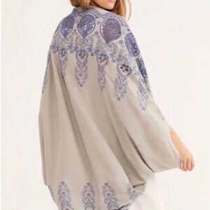 Free People Catania Embroidered Eyelet Kimono Lace Cover Up Grey Blue Floral OS